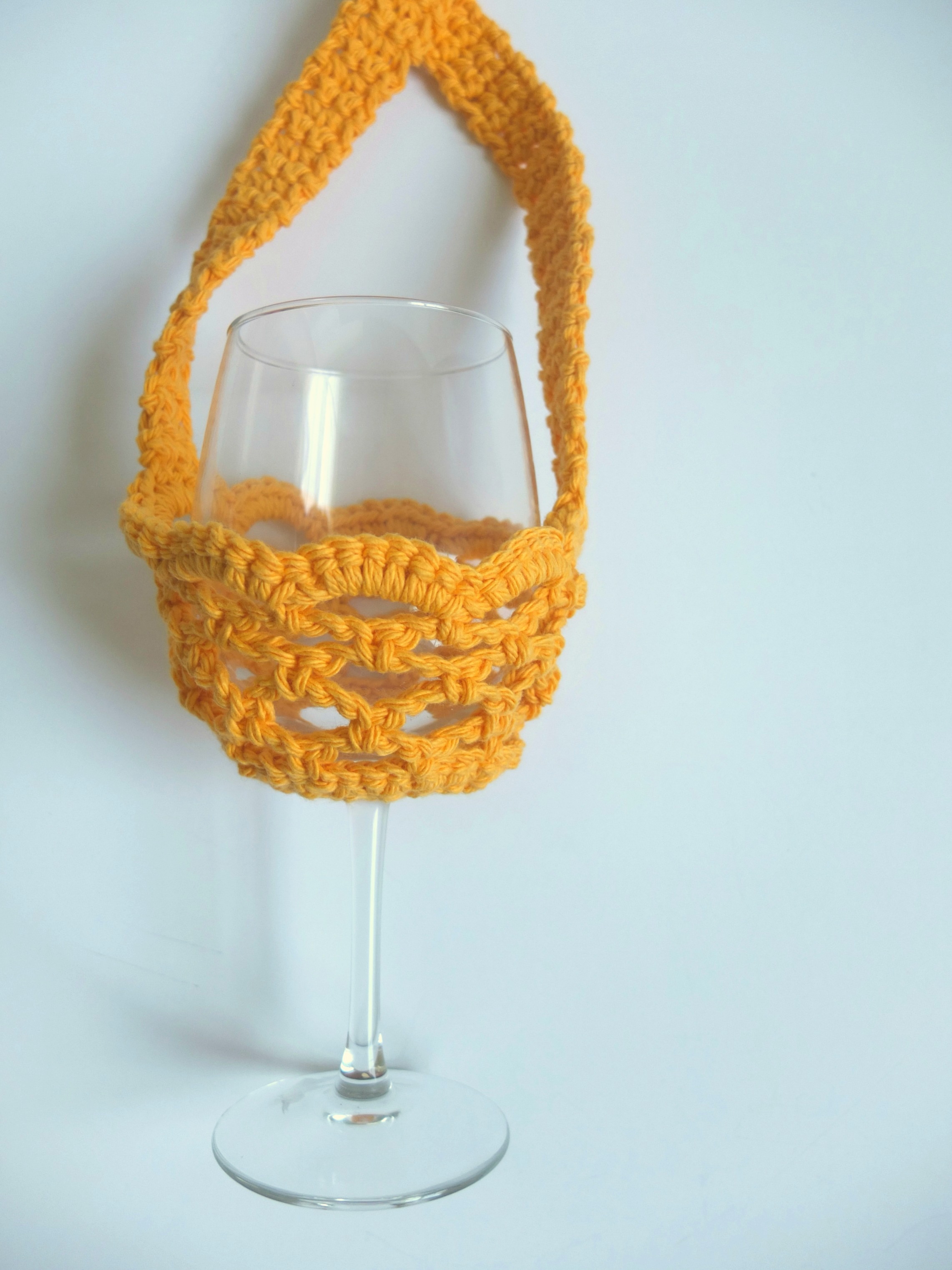 In addition to the For the Love of Wine Bottle Cozy, I wanted to include a bonus pattern for a wine glass holder! Because why not? If you’re gonna pour me a glass of wine, then I’m gonna carry it around with me!